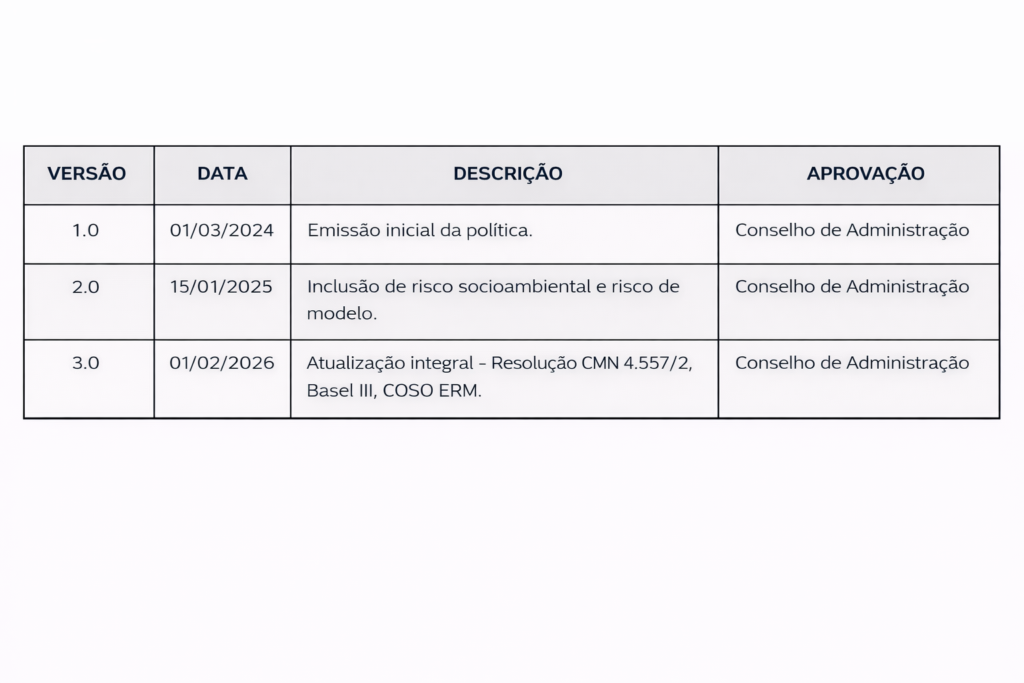 Esta política será revisada anualmente ou extraordinariamente em caso de mudanças relevantes no ambiente de negócios ou regulatório.