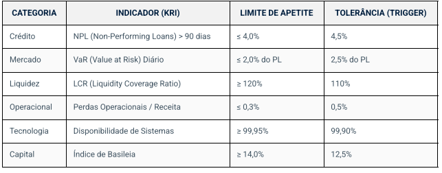 ■ Apetite ao Risco: O nível e tipo de risco que o banco está disposto a