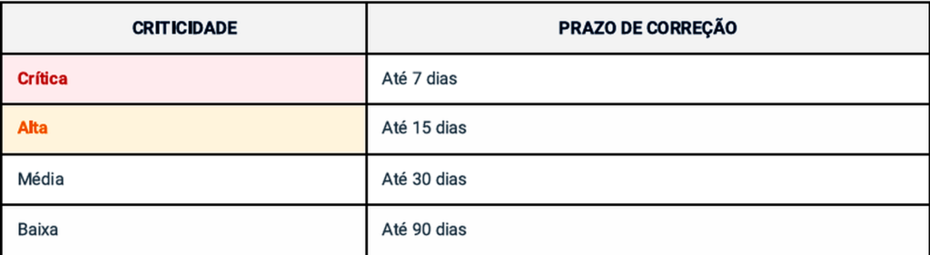 ■ ANEXO II – Tabela de SLAs de Correção de Vulnerabilidades