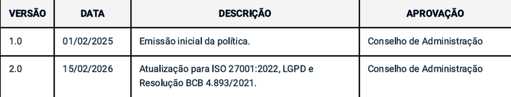 Esta política estabelece as diretrizes fundamentais para a gestão de segurança da informação, alinhada às melhores práticas internacionais (ISO 27001, NIST) e exigências regulatórias (BCB, LGPD), servindo como guia mandatório para todos os colaboradores e parceiros.
