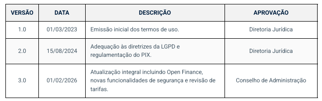 O Banco JC Digital pode atualizar estes Termos periodicamente. Mudanças significativas serão notificadas com 30 (trinta) dias de antecedência via email ou notificação no App. O uso continuado após a vigência das alterações implica aceitação tácita.